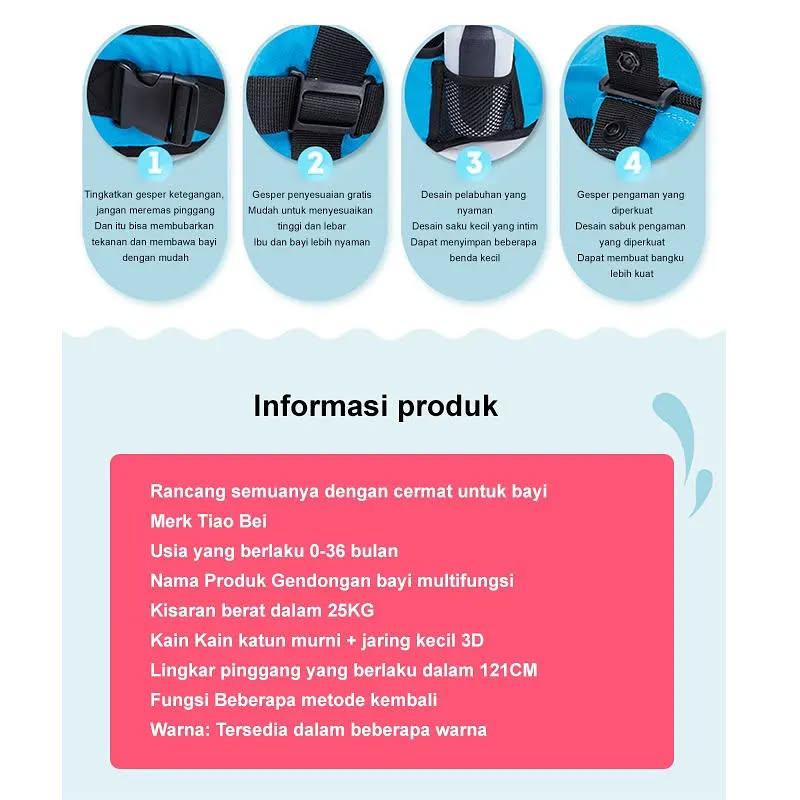 سهلة الاستخدام بمواصفات خصصت لراحة الام والطفل بحيث يتوزع وزن الطفل على الحوض الأكتاف ومصنوعه من قماش قوي وقابل لتهوية