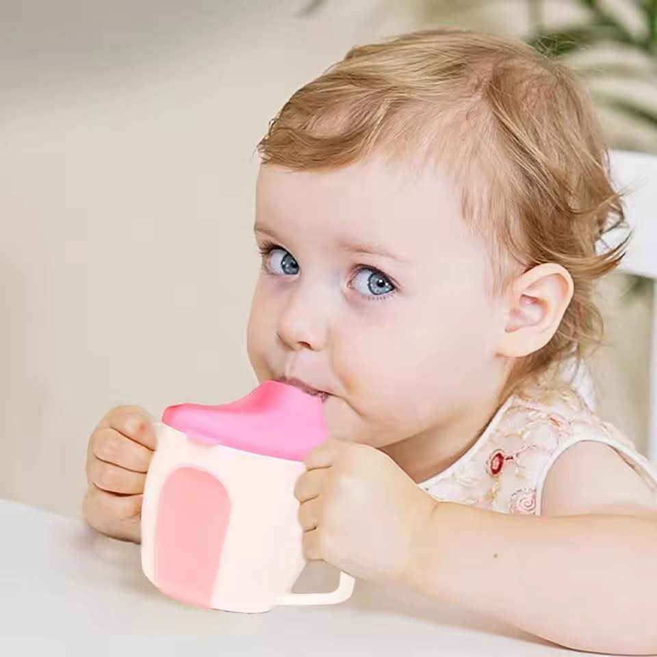 مقبض مزدوج يتيح للطفل الإمساك بالكوب بكلتا اليدين.